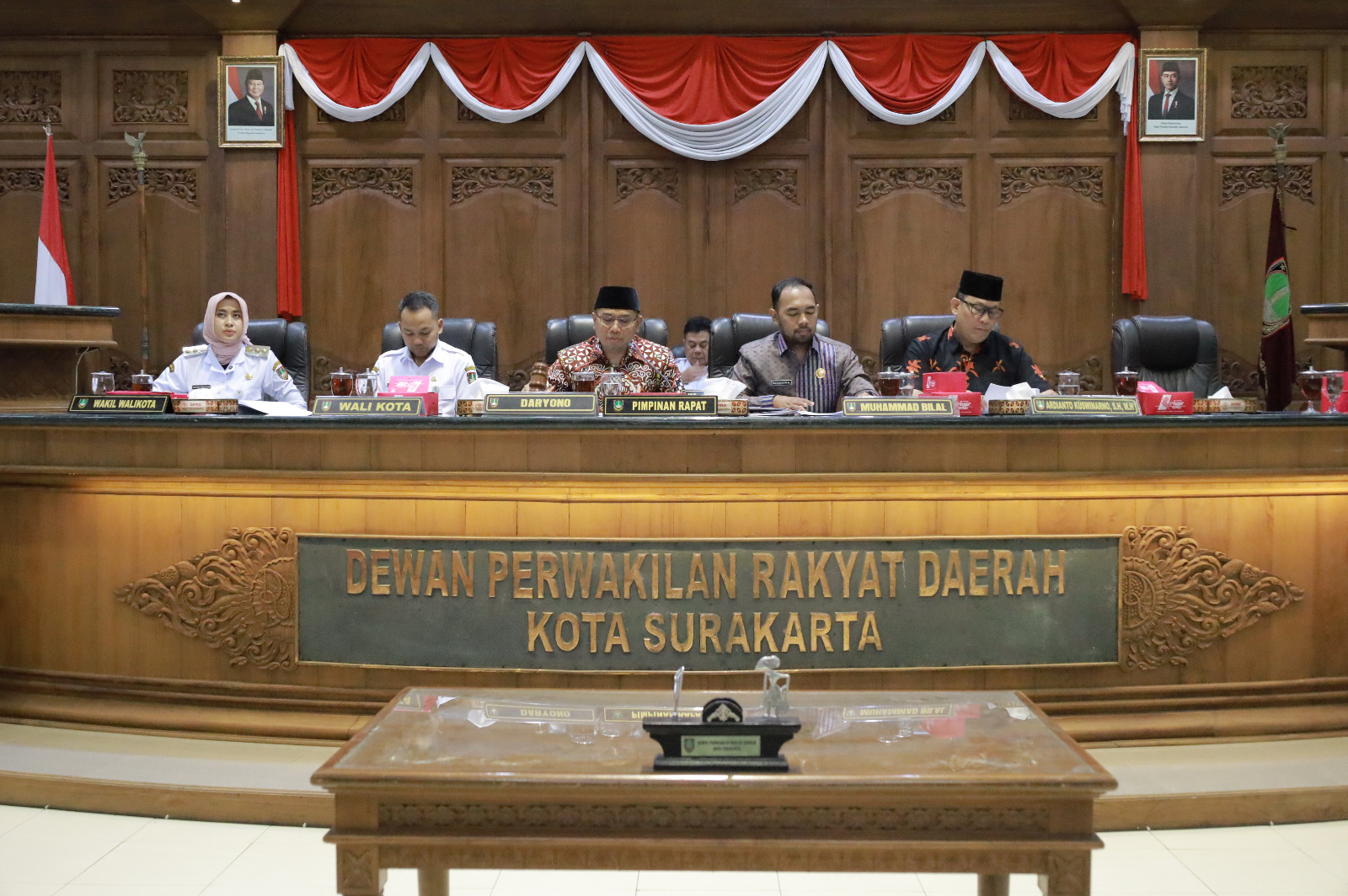 SURAKARTA - DPRD Kota Surakarta bersama Wali Kota Surakarta menyetujui empat Rancangan Peraturan Daerah (Raperda) dalam Rapat Paripurna yang digelar di Graha Paripurna DPRD Kota Surakarta, Rabu (24/12...