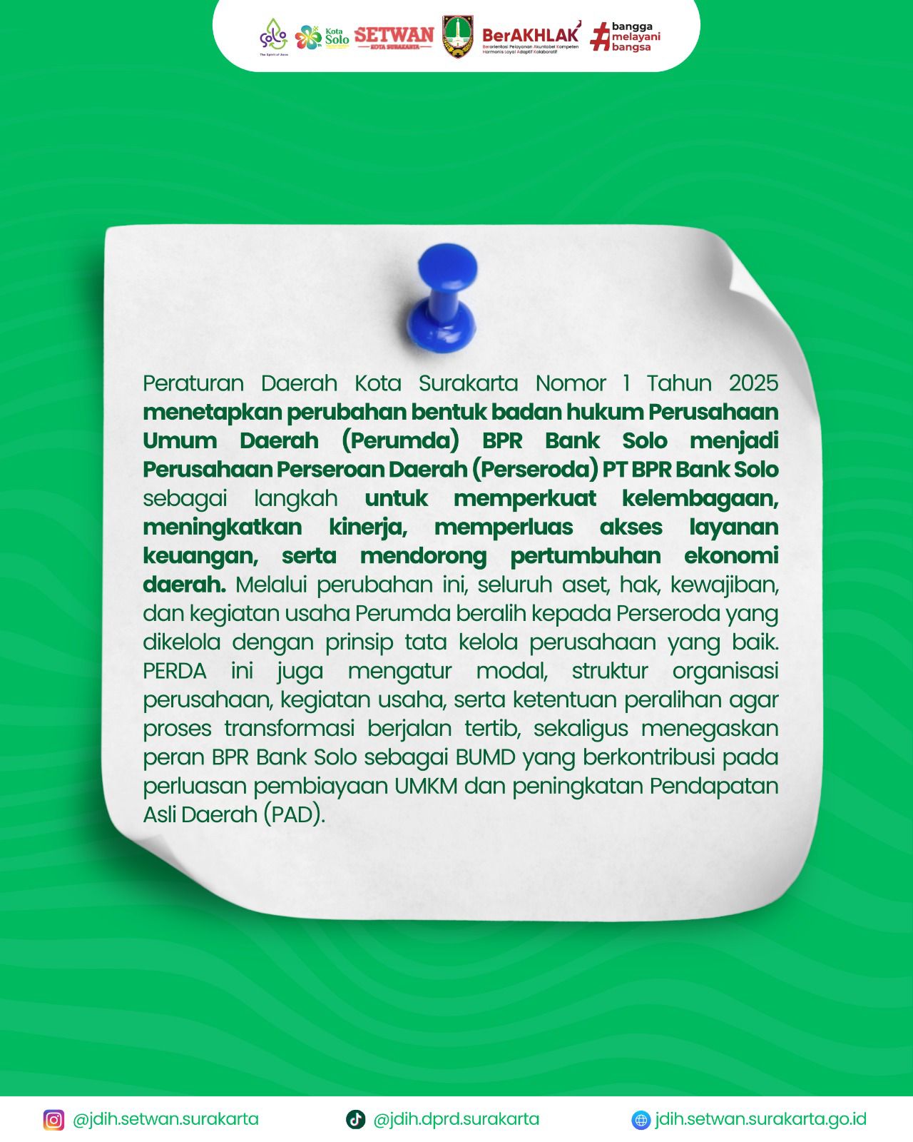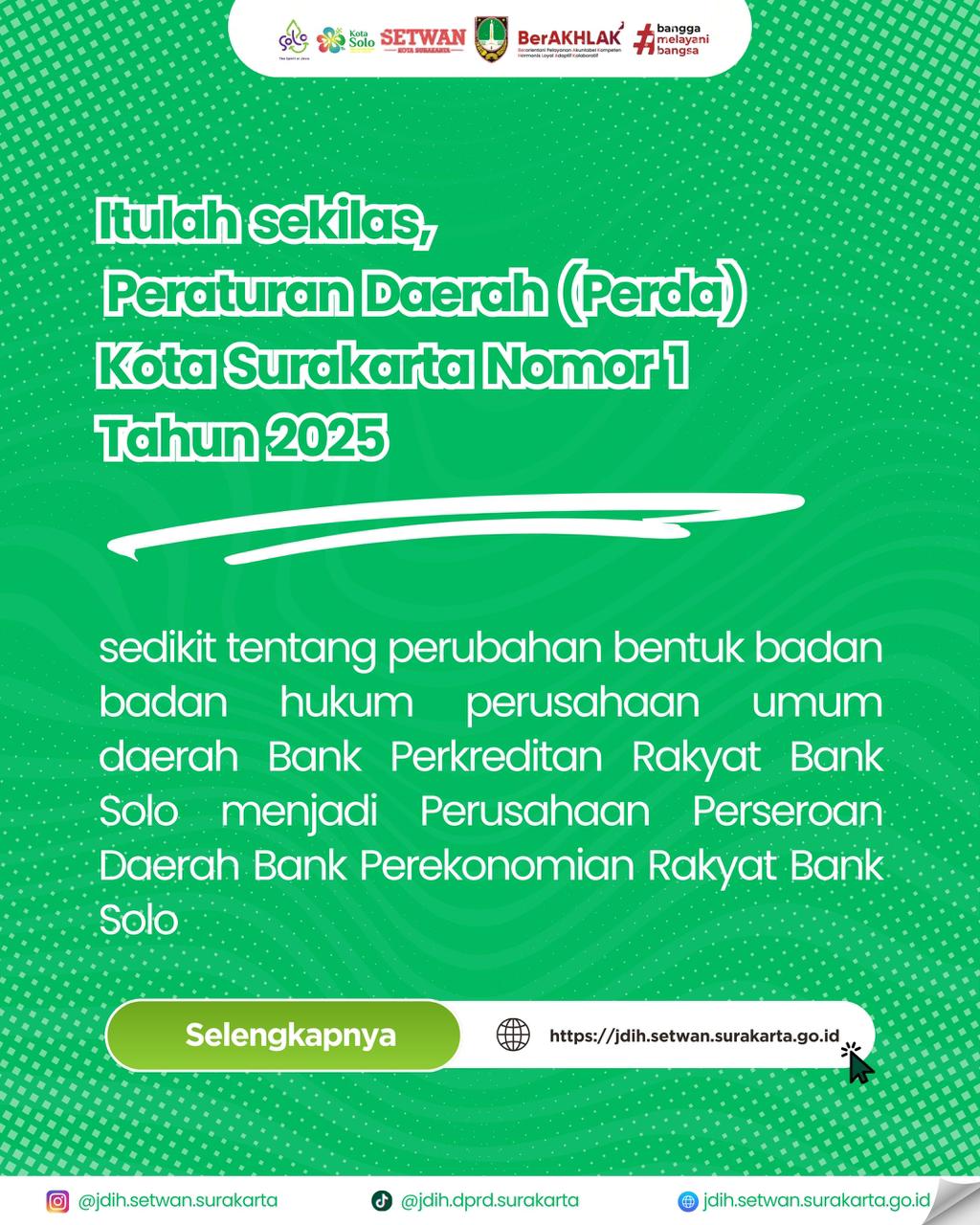 Perda Nomor 1 Tahun 2025 Tentang Perubahan Perumda BPR Bank Solo ke PT. BPR Bank Solo